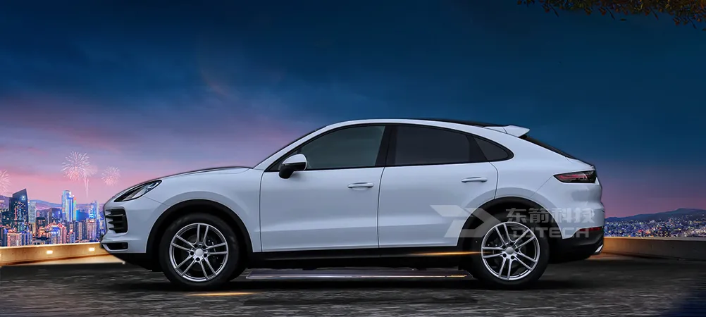 御品第五代智能踏板 适配18+款保时捷卡宴现已上市! 01 单门单开,降低跨步幅度 当一边车门开启,踏板自动伸出,降低跨步幅度的作用,舒适度更佳。而关门踏板自动缩回,紧贴车辆底盘,不影响原车通过性。 02 智能迎宾,高端大气 通过按车钥匙解锁,主驾驶踏板自动伸出,展现绅士风度的迎宾功能,更显得汽车的高端大气。 03 防夹防撞,提升安全性 踏板展开时,踏板智能检测障碍物,遇障碍物后将自动缩回,以避免强行伸出而损坏踏板或车身。 踏板缩回时,踏板智能检测障碍物,遇障碍物后将自动停止,以避免强行缩回而夹伤小孩等,有效提升安全性。 04 速度保护,防止误触 在行车过程中,为了防止误触或是车门没关好,导致踏板伸出造成磕碰事故,当车速达到5km/h,踏板将自动收回,守护你的行车安全! 05 手动控制,根据所需控制踏板 可根据需要手动控制踏板伸出或缩回状态,同时手动按钮也可根据需要关闭、开启踏板控制系统。 比如:①按一次切换踏板状态;②长按5S控制系统停止,踏板收回并停止工作;③长按5S控制系统恢复,踏板正常工作。让踏板在不适合展开的情况不再自动伸出,为恶劣环境下使用踏板提供解决方案。 开门即启动,关门即收回 既方便又不影响整体美观,你还不安排上吗? 御品第五代智能踏板 适配18+款保时捷卡宴 ↓↓↓